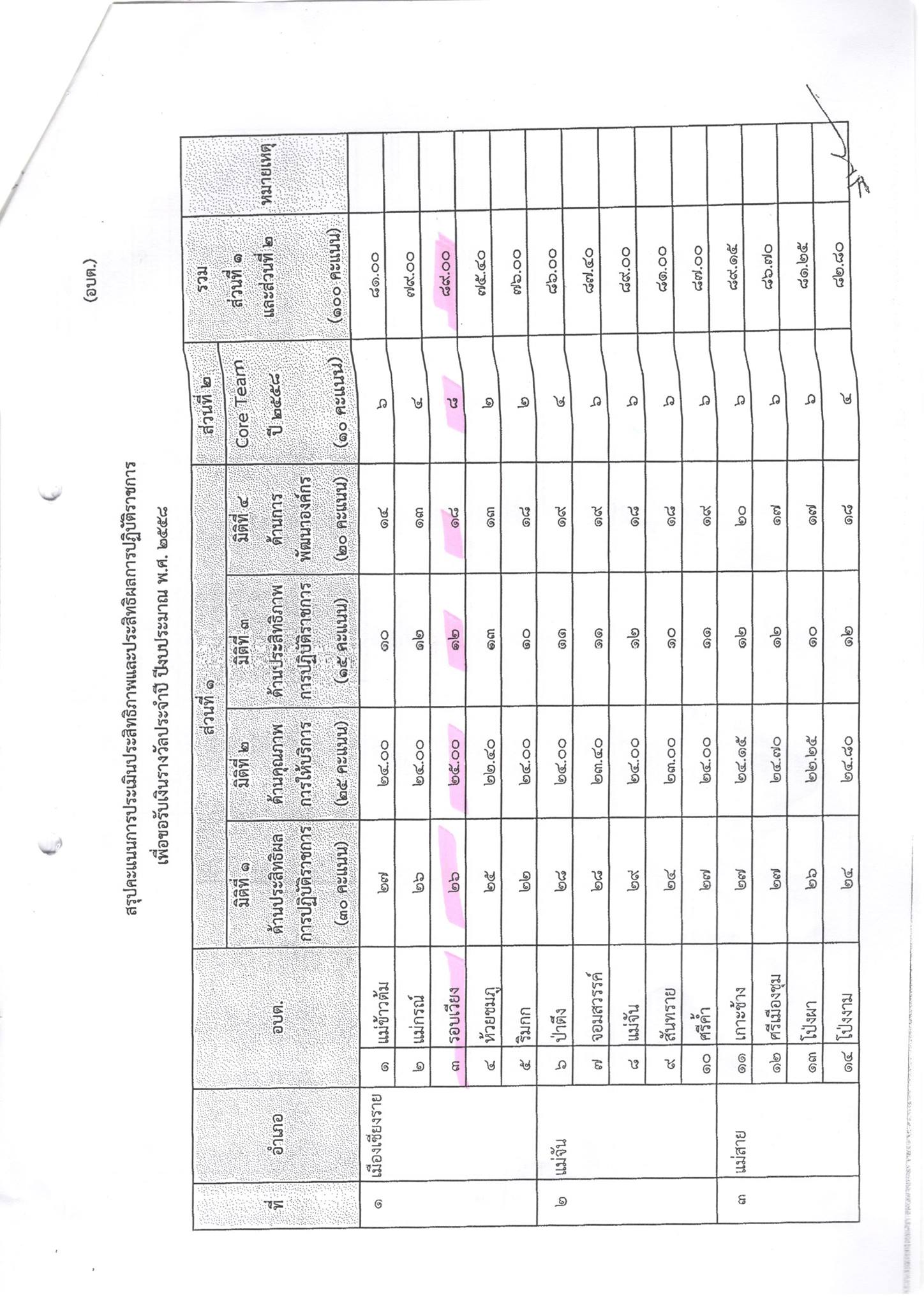 ผลคะแนนการประเมินประสิทธิภาพและประสิทธิผลการปฏิบัติราชการขององค์การบริหารส่วนตำบล ประจำปี 2558